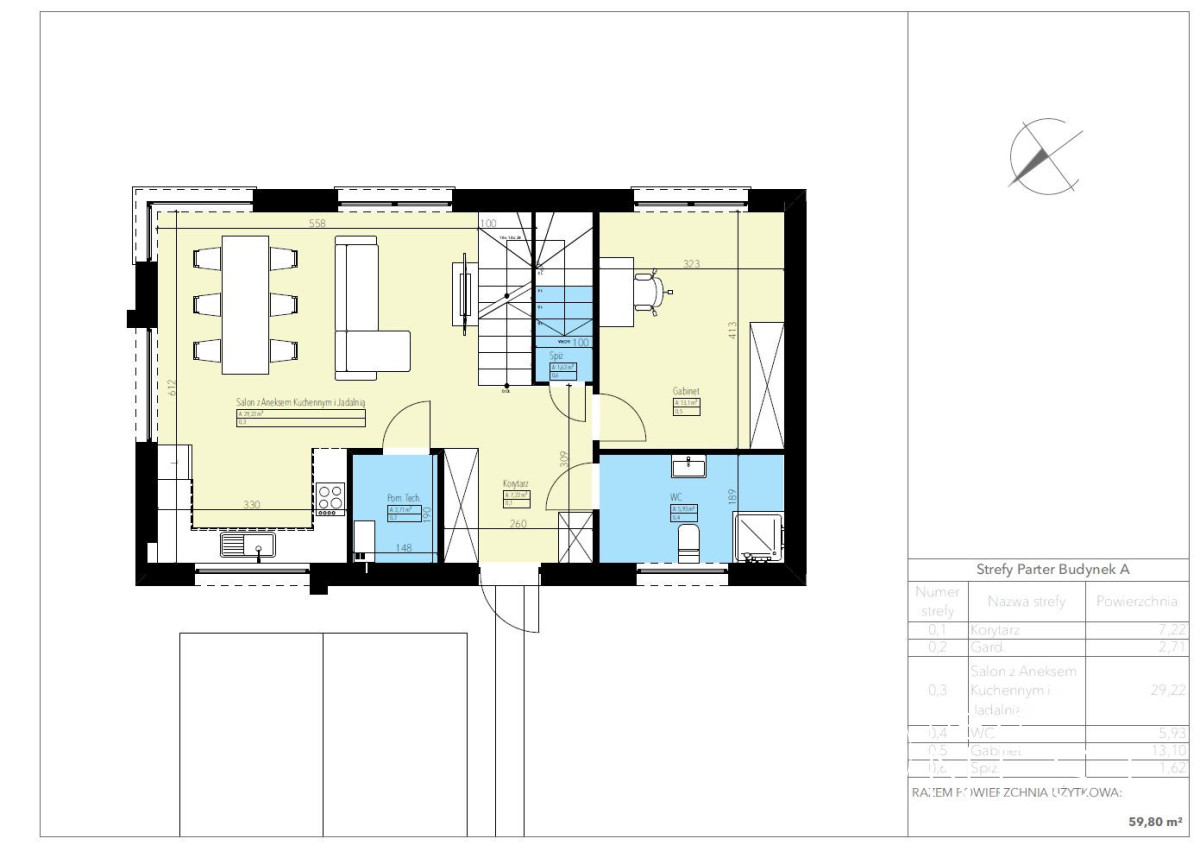 - dach - dwuspadowy, pokryty blachą na rąbek