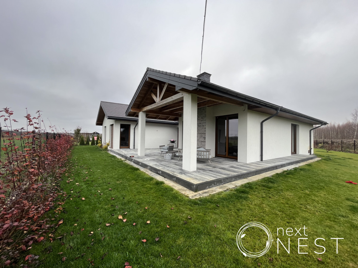 Przedmiotem sprzedaży jest dom jednorodzinny wolnostojący o powierzchni 209,8 m2 z garażem dwustanowiskowym, położony w Walendowie, w gminie Nadarzyn, na południe od Warszawy. Budynek główny został zaprojektowany w postaci eleganckiego, parterowego domu jednorodzinnego według projektu DAKOTA V. Zmiany w projekcie zostały naniesione na rzucie pomieszczeń. Rok budowy 2020r.