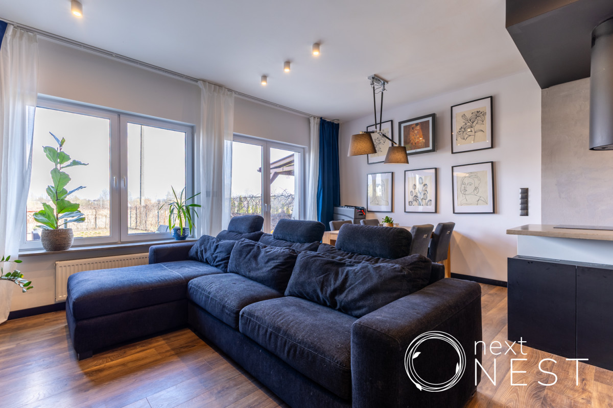 Nowocześnie urządzone wnętrze, dobrze doświetlone pokoje na piętrze oraz sypialnia z garderobą i łazienką na poddaszu zapewnią wygodne miejsce nawet dla 5-cio osobowej rodziny.