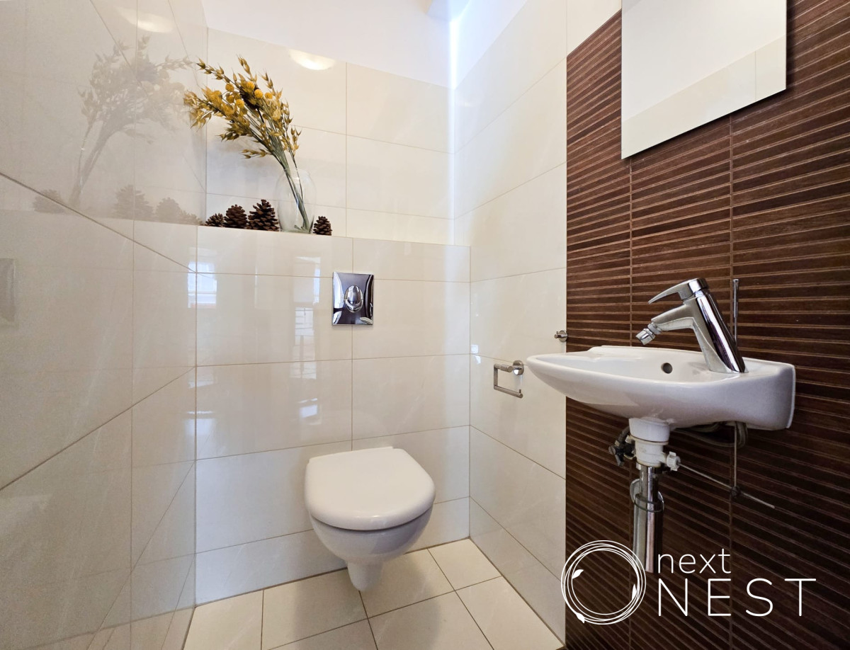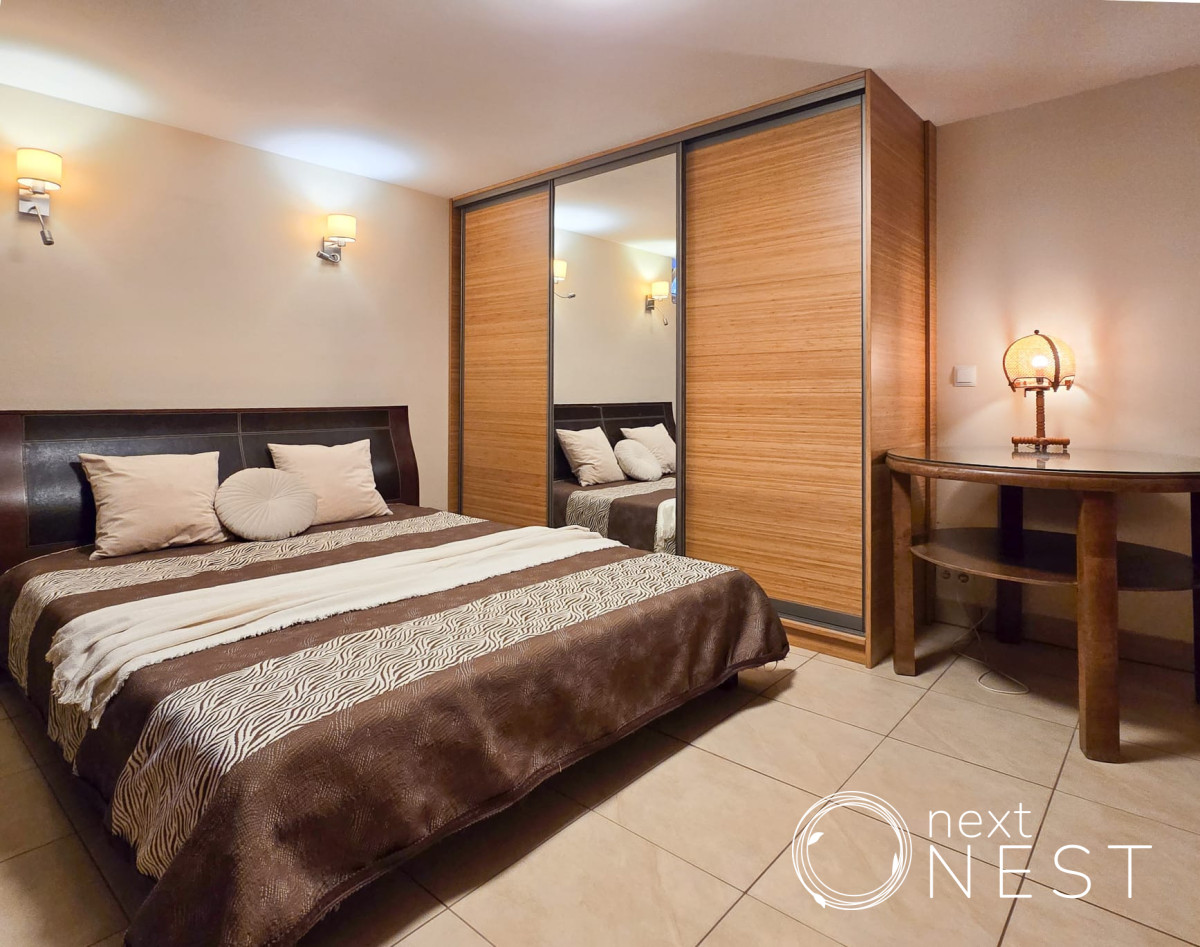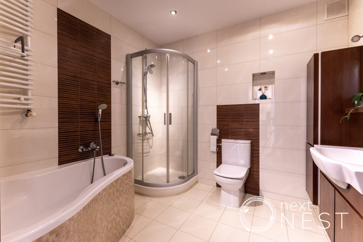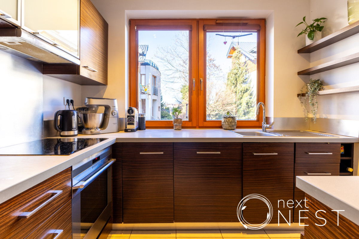 Sprzęty AGD: lodówka, płyta indukcyjna, piekarnik elektryczny, zmywarka. Wykończone z dobrej jakości materiałów: drewniane podłogi i schody, system nagłośnienia w łazience oraz sterowanie do głośników w pokojach, ogrzewanie podłogowe w sypialni, okna drewniane. W oknach zamontowane moskitiery na wymiar.