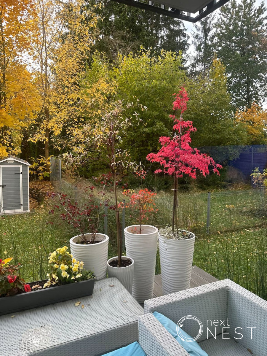 - Zagospodarowany ogródek z tarasem,