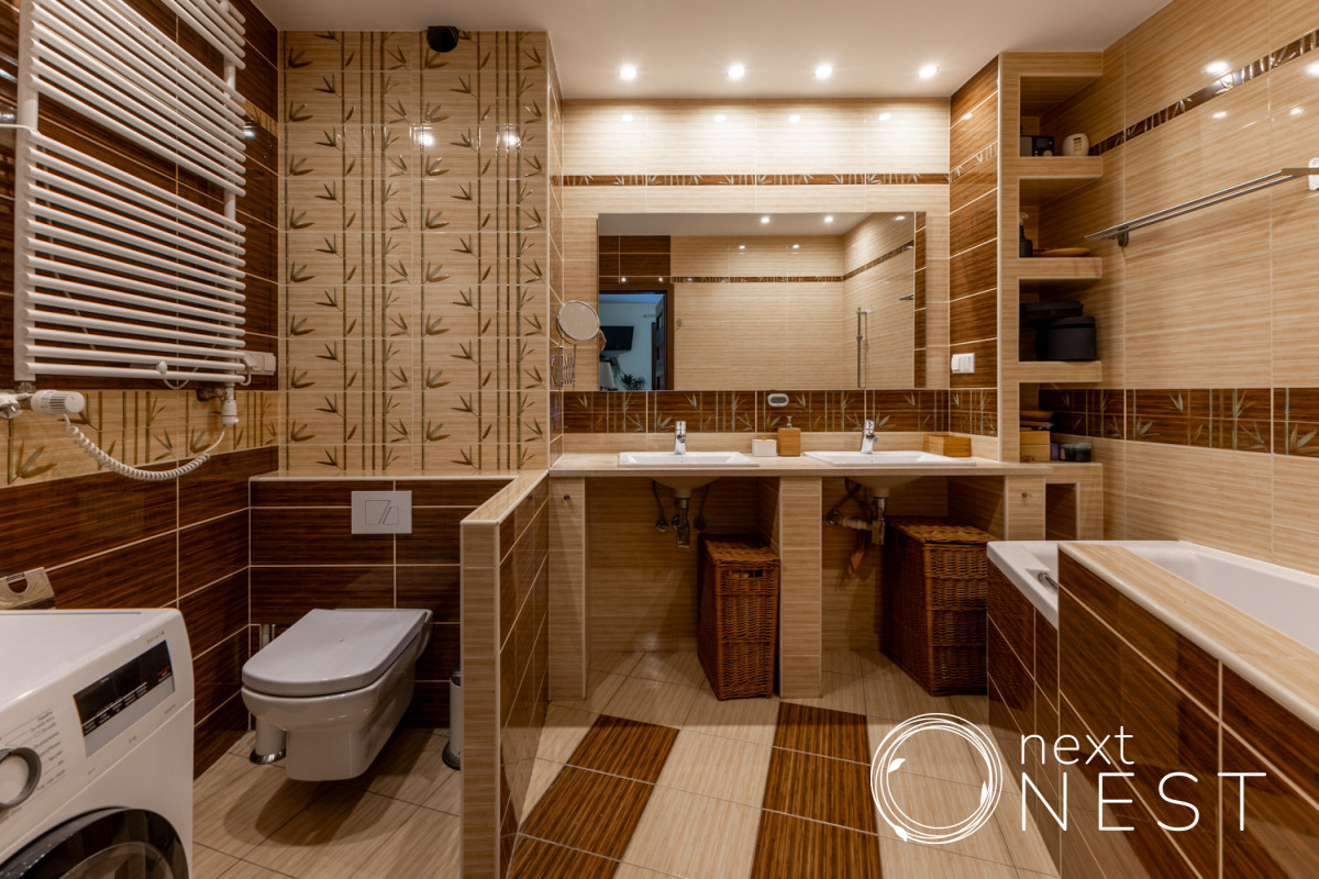 - jasna łazienka z wanną i wc