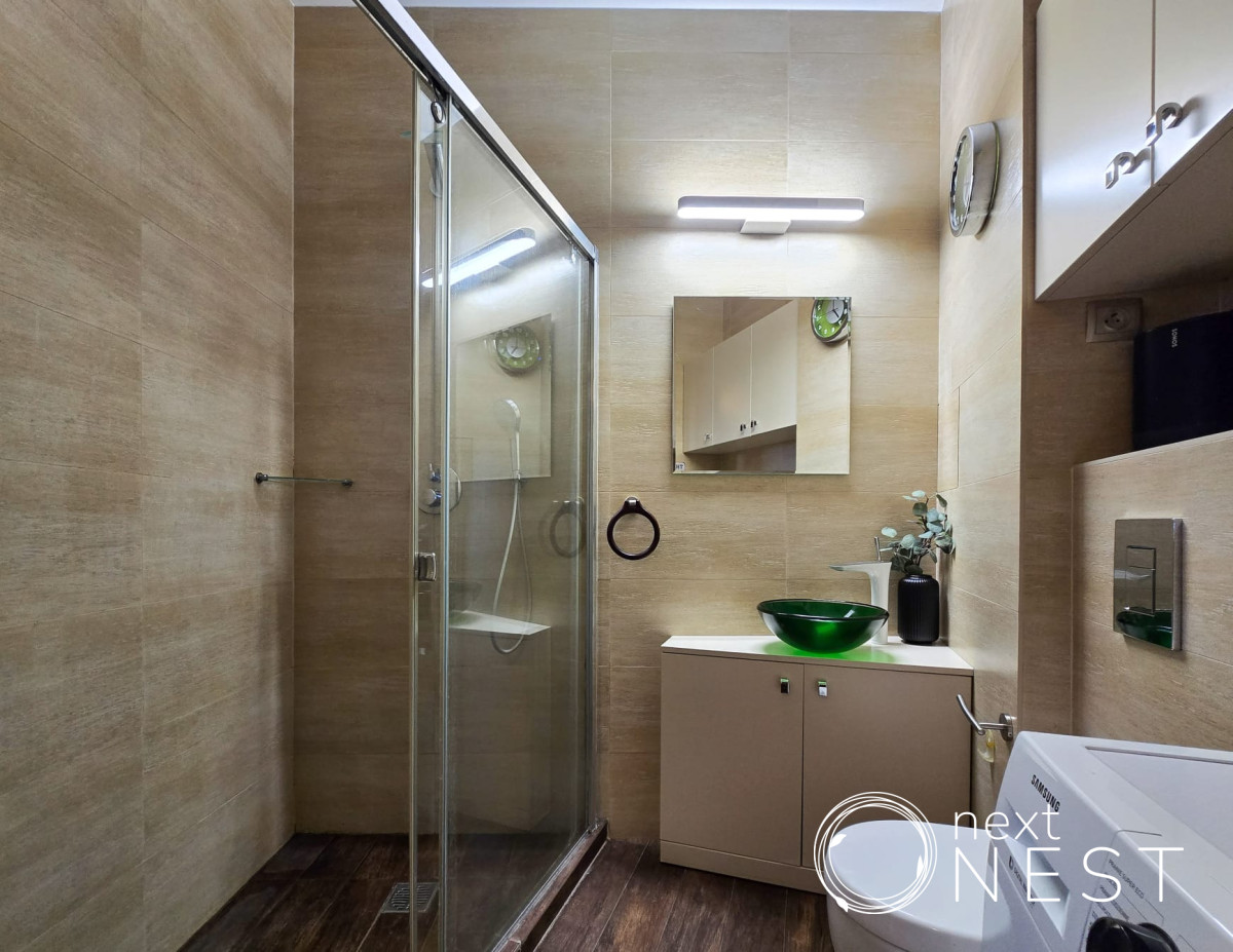 Przemyślany układ pomieszczeń sprawia, że apartament jest nie tylko wygodny, ale i bardzo funkcjonalny. Sercem mieszkania jest jasny salon z otwartą, widną kuchnią - przestrzeń sprzyjająca spotkaniom, rozmowom i wspólnemu spędzaniu czasu. Tuż obok znajduje się pojemna spiżarka, która doskonale sprawdzi się jako miejsce do przechowywania.