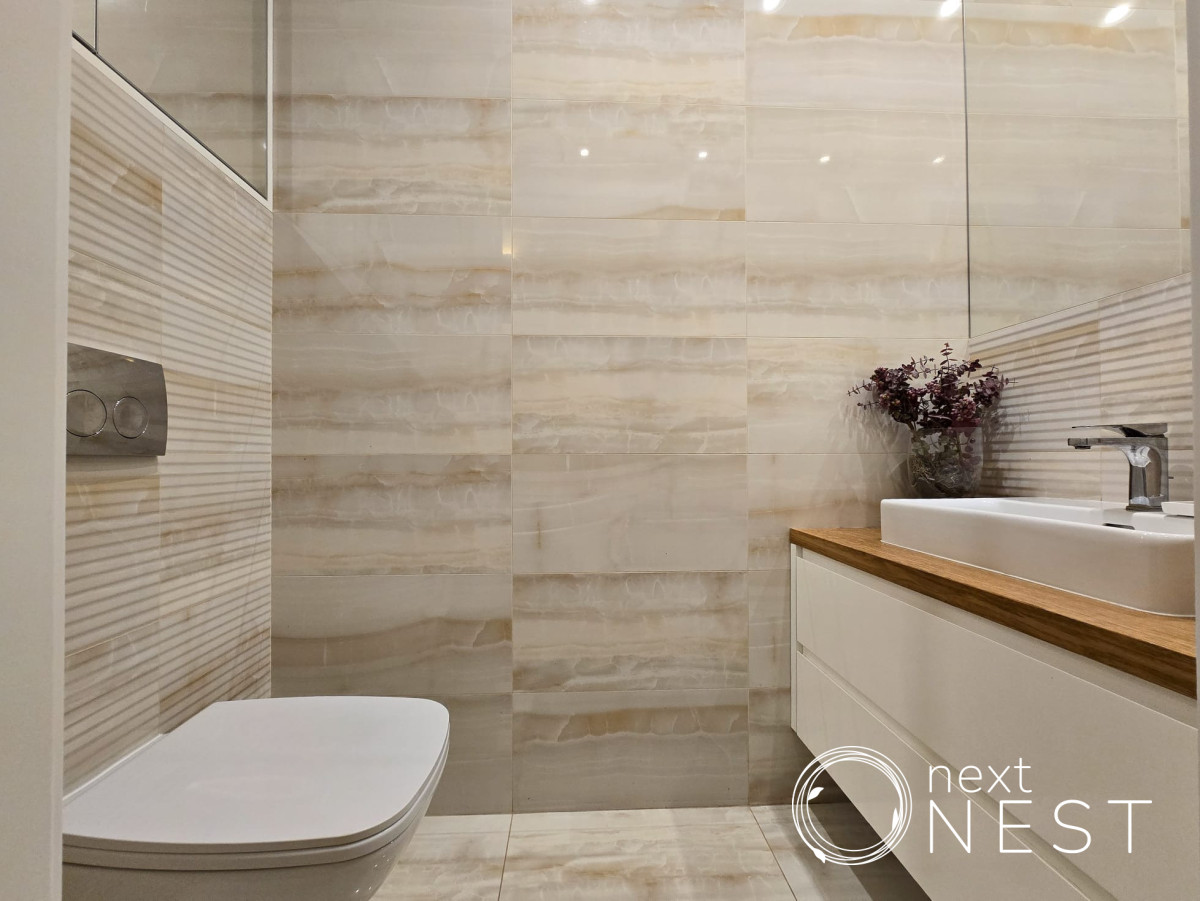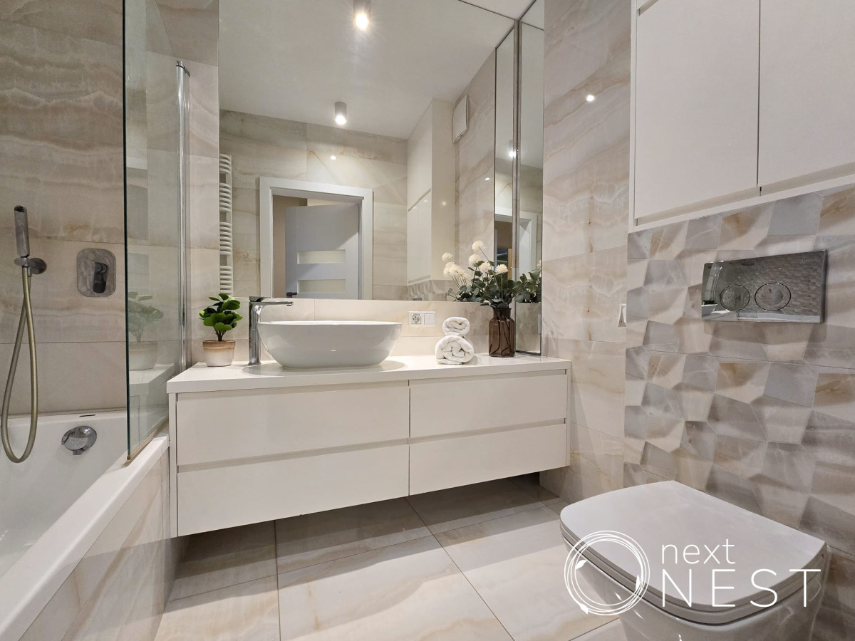 - jasna łazienka z wanną i wc