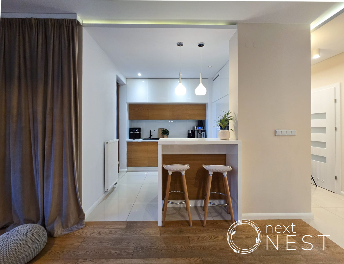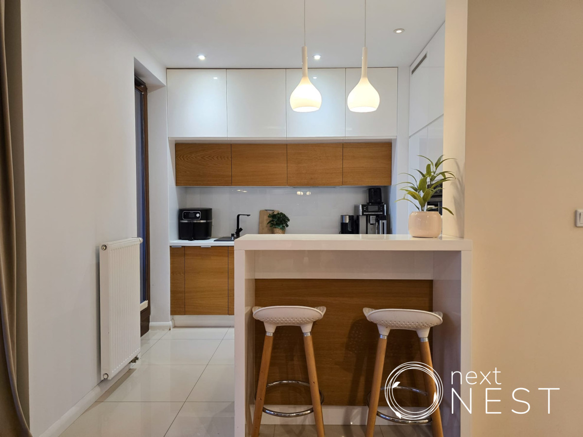 Atuty mieszkania:- mieszkanie jest bardzo funkcjonalne z oddzielną strefą dzienną oraz prywatną w głębi mieszkania,- wykończone w bardzo dobrej jakości: kuchnia drewniana w zabudowie oraz drewniana podłoga, - gotowe od razu do wprowadzenia, możliwość pozostawienia większości mebli,Osiedle: