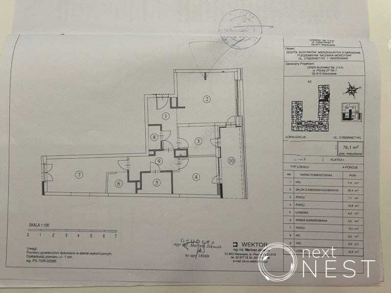 w Warszawie, przy ulicy Cybernetyki.Opis nieruchomości:3 pokojowe mieszkanie ma powierzchnię 76,1 m2 i usytuowane jest na 2 piętrze 6- cio piętrowego, nowoczesnego apartamentowca.