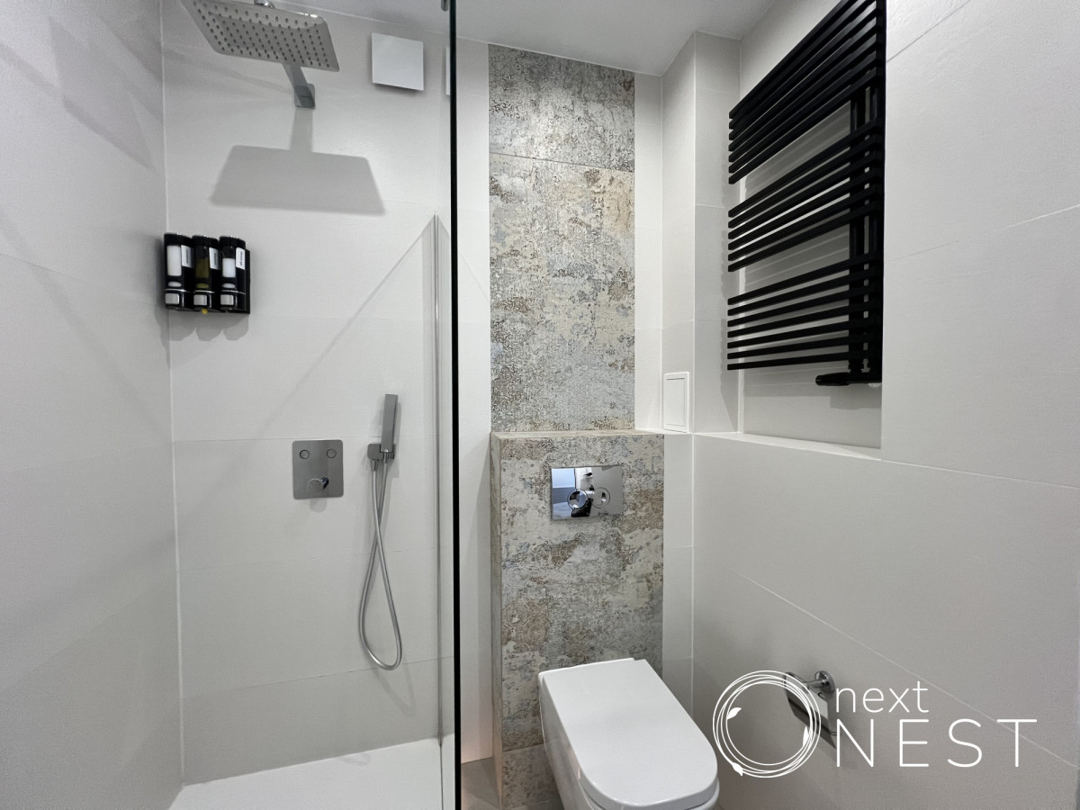 The subject of the lease is a 2-room apartment, located on the fourth floor of a six-storey building with an elevator at 11/13 Bracka Street in Warsaw. The apartment consists of a living room, bedroom, dressing room, separate kitchen, bathroom and hallway.